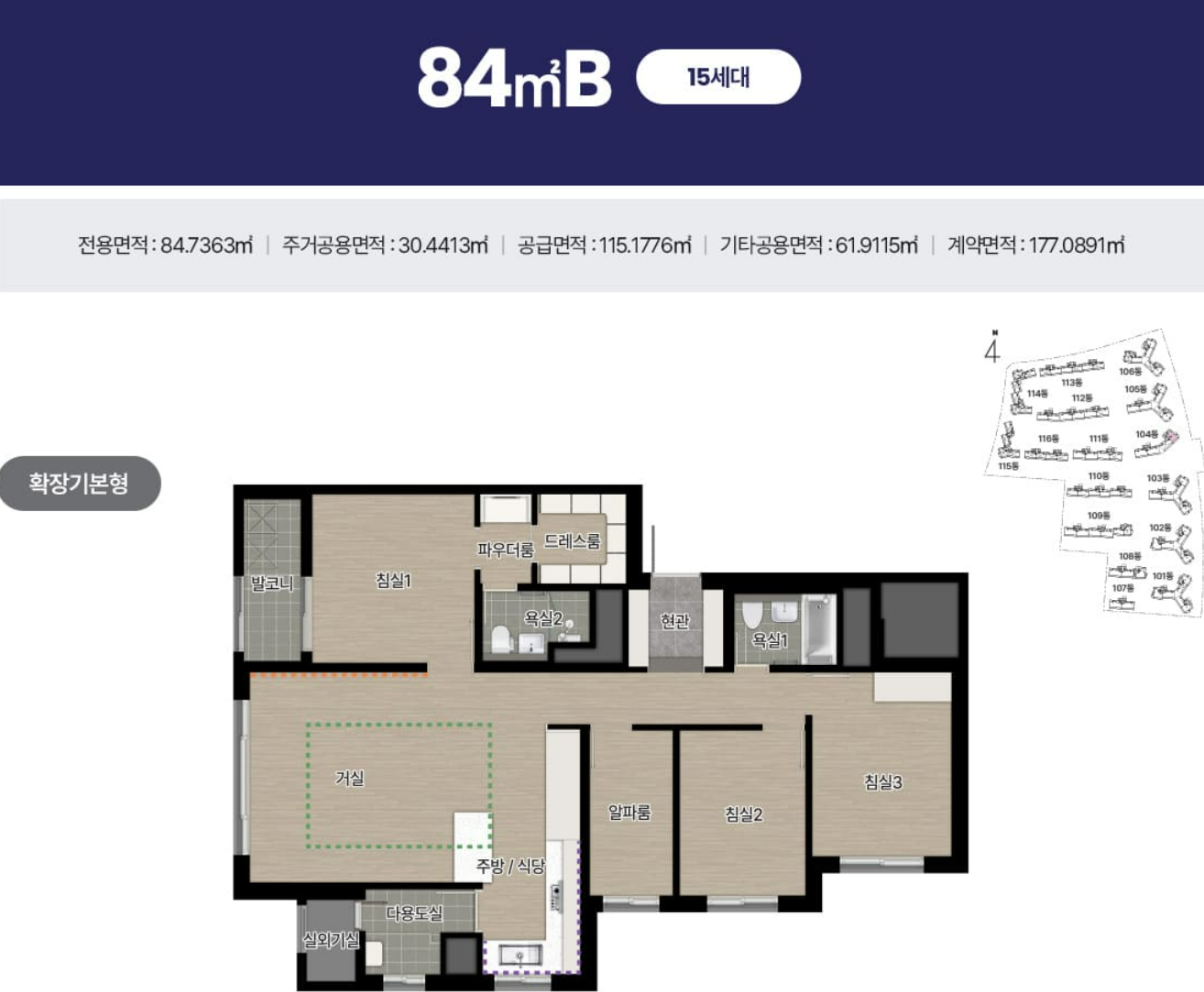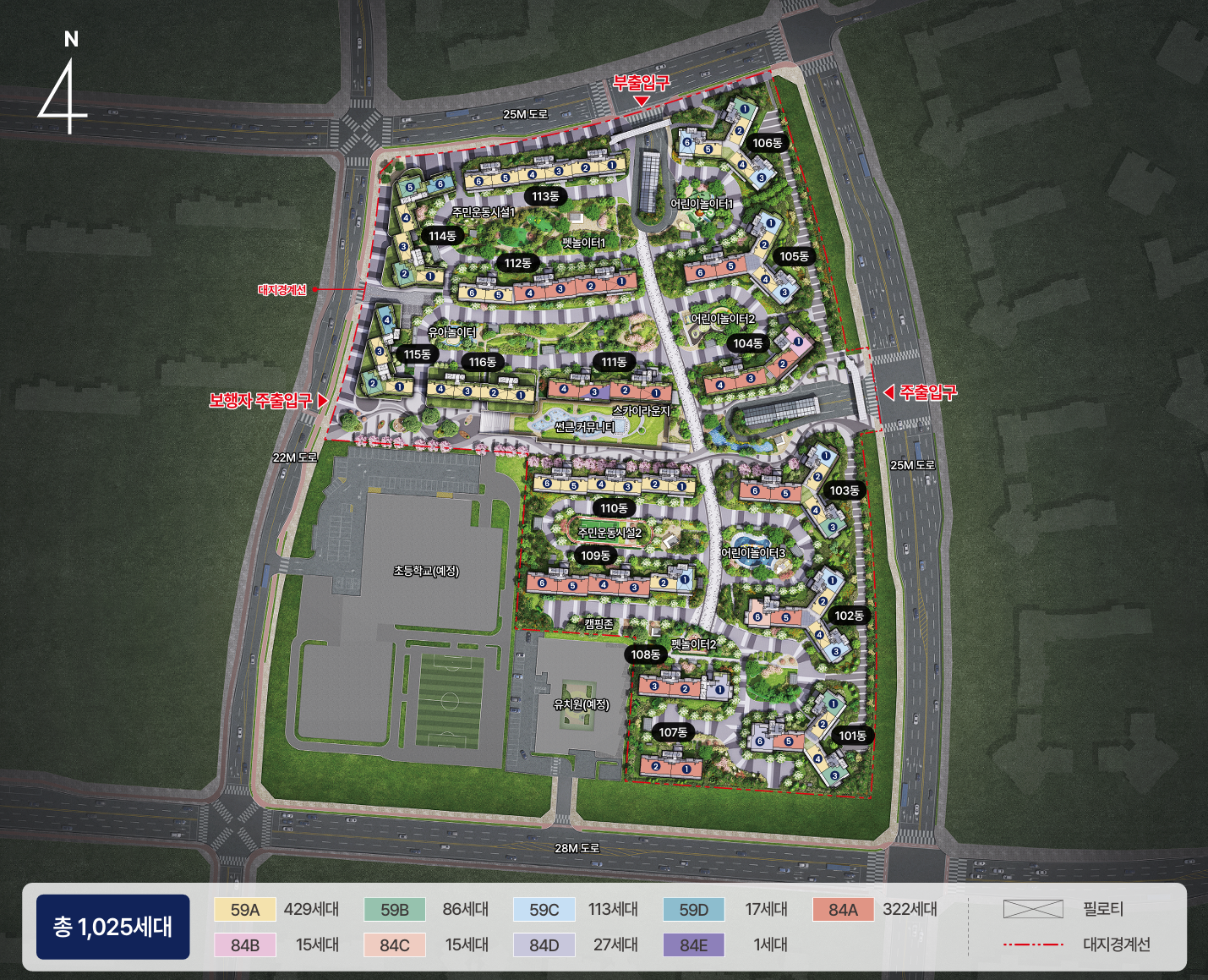 - 중소형 평형 위주: 실수요자들이 선호하는 전용면적 59㎡와 84㎡의 중소형 평형으로만 구성되었습니다.