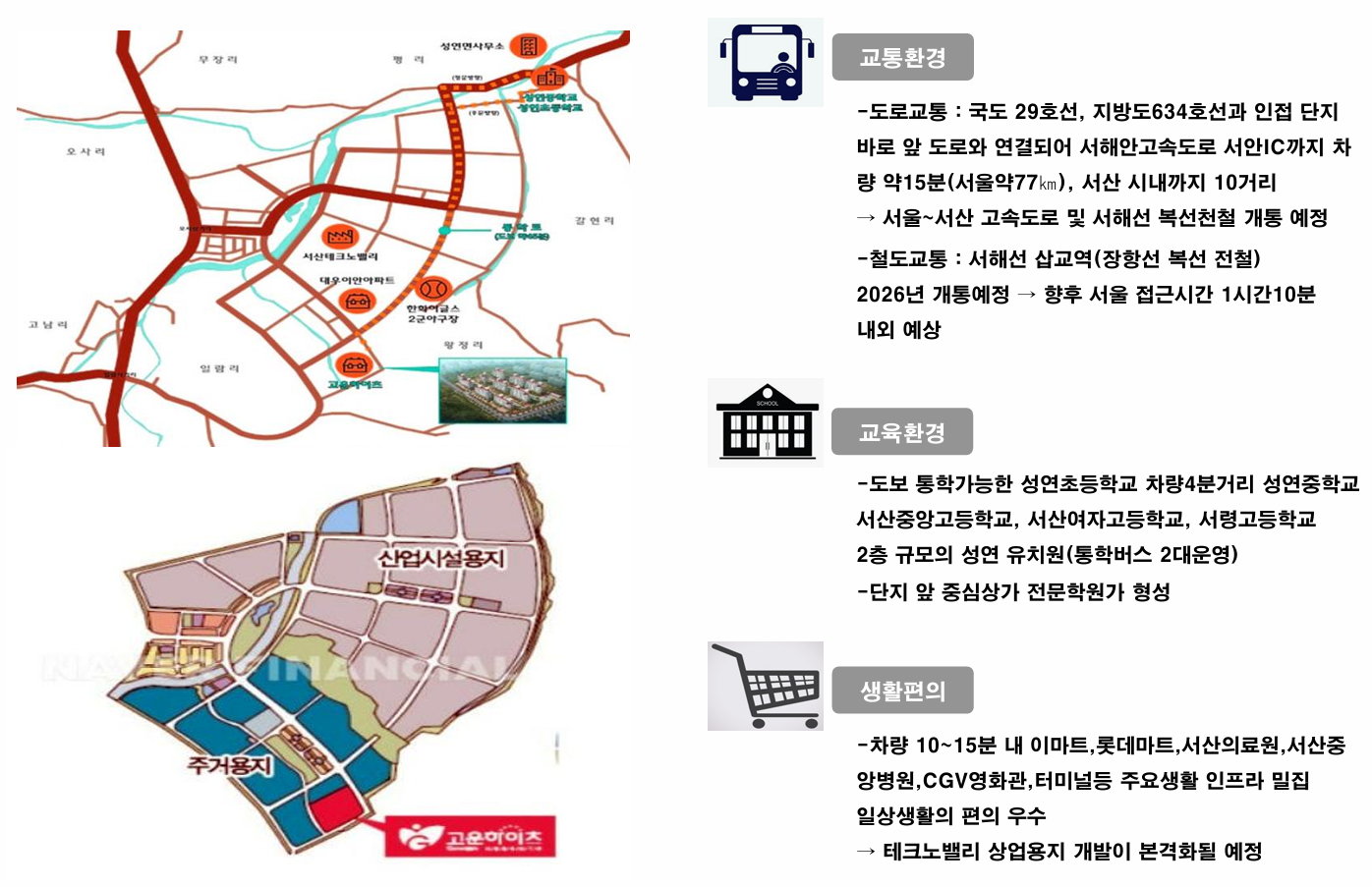 🚗 교통: 서울까지 약 77km, 인근 주요 도로망을 통해 서산 시내 및 광역 이동 용이
